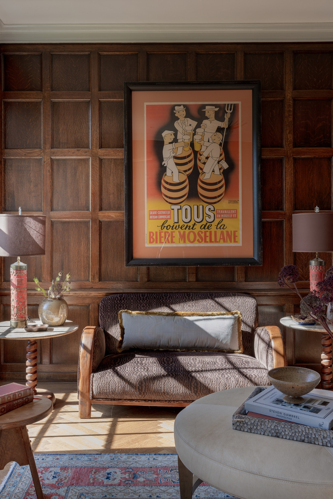 This sitting room exemplifies coastal interiors and nautical heritage, with bespoke craftsmanship, fluted wood detailing, and refined interiors in a historic luxury estate.